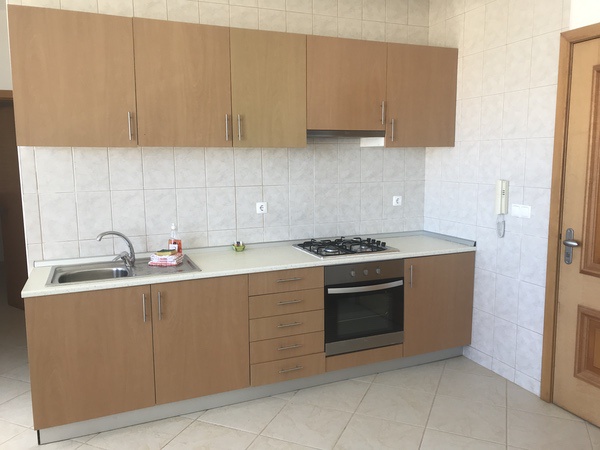 Fully fitted kitchen with oven, hob and fridge