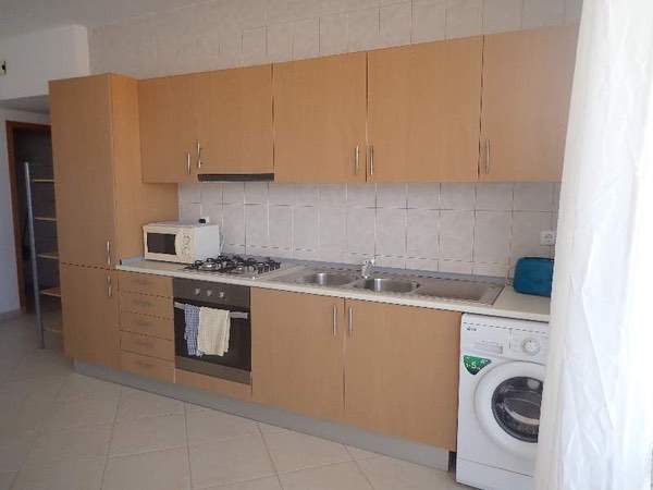 Fully fitted kitchen with oven, hob and large fridge freezer.